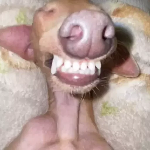 Rosto de um porco com a boca aberta e dentes aparecendo, parecendo uma expressão engraçada.