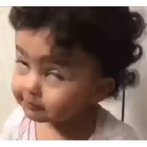 Menina pequena com cabelo cacheado e expressão curiosa, olhando para o lado.