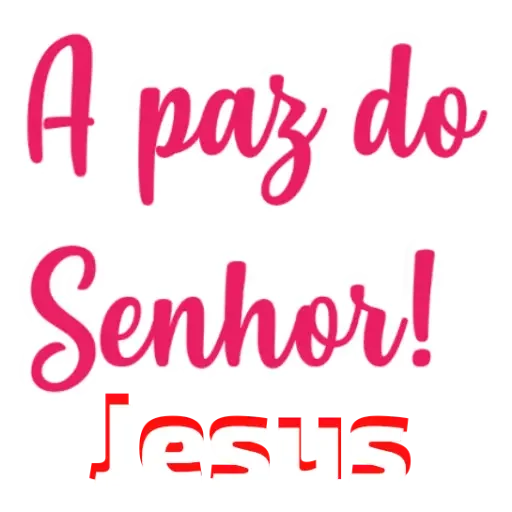 Uma figurinha com o texto 'A paz do Senhor! Jesus' em letras coloridas, rosa e vermelha.
