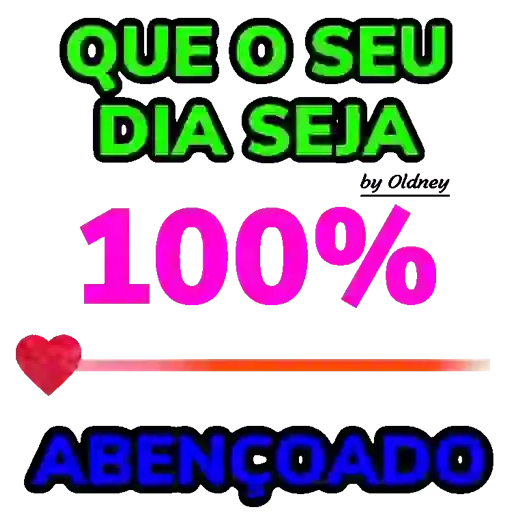 Uma figurinha com texto colorido que diz 'QUE O SEU DIA SEJA 100% ABENÇOADO' com um coração vermelho.