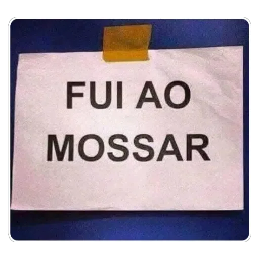 Um pedaço de papel branco com as palavras 'FUI AO MOSSAR' escritas em preto, preso com uma fita adesiva marrom.