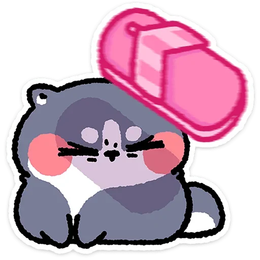 Um desenho de um animal cinza com bochechas rosadas e um chapéu rosa, com expressão de envergonhado ou tímido.