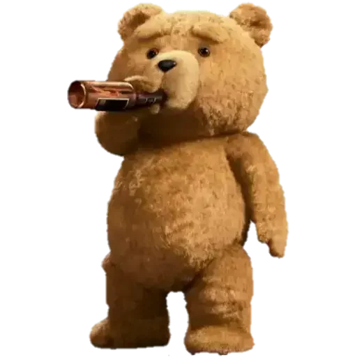 Um urso de pelúcia com expressão de surpresa e alegria, segurando uma garrafa de bebida e com o texto 'sextouuuu!'…