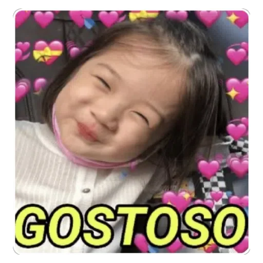 Menina com expressão de desconfiança ou surpresa, olhos semicerrados e boca aberta. Legenda 'HUUUUM...DOTOSO'