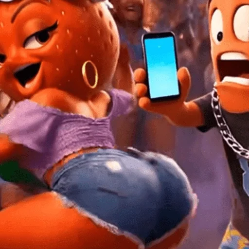 Uma mulher com uma expressão de surpresa e um homem mostrando um celular com a tela azul, ambos com semblantes engraçados.