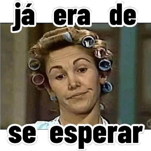Uma mulher com rolos no cabelo e uma expressão facial séria, com o texto "já era de se esperar" sobreposto.