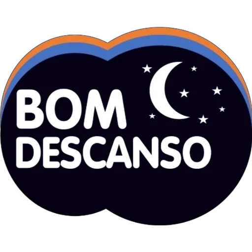Um coração preto com as palavras 'BOM DESCANSO' em branco, uma lua crescente e estrelas ao lado. Faixas laranja e azul no topo.