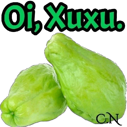 Dois chuchus verdes com a frase 'Oi, Xuxu.' em verde na parte superior.