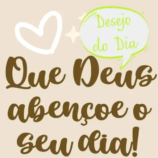 Um coração branco e um speech bubble verde com o texto 'Desejo do Dia' e 'Que Deus abençoe o seu dia!' em letras marrons e verdes.