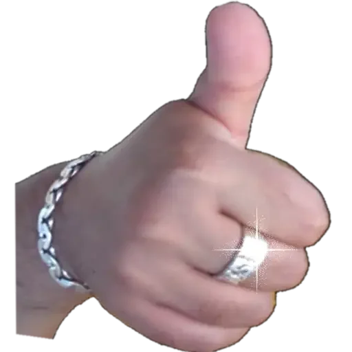 Mão com polegar para cima saindo de um buraco, com expressão de aprovação ou concordância.
