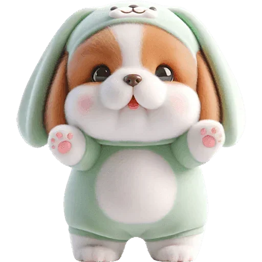 Um cachorro vestido com um macacão verde de coelho, com orelhas compridas e uma expressão fofa.