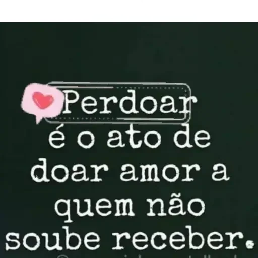 Uma mensagem de texto em um fundo preto, com uma bolha de fala rosa contendo um coração vermelho. O texto diz 'Perdoar é o ato de doar amor a quem não soube receber.'