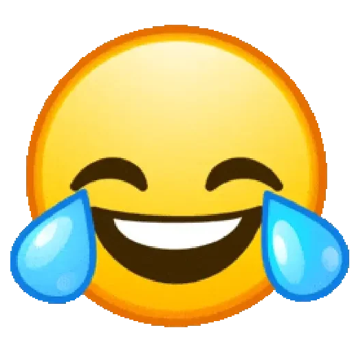 Um emoji de rosto amarelo com olhos fechados e lágrimas de alegria, sorrindo amplamente.