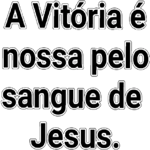 Um texto em preto que diz 'A Vitória é nossa pelo sangue de Jesus.'