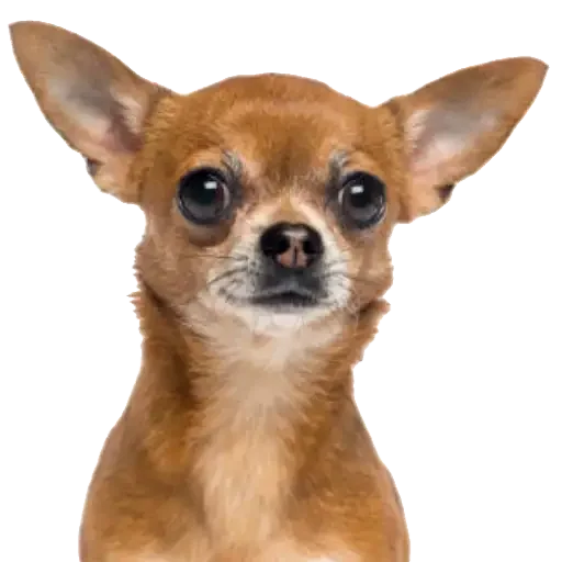 Um cachorro Chihuahua marrom com orelhas grandes e olhos pretos grandes, com uma expressão fofa.