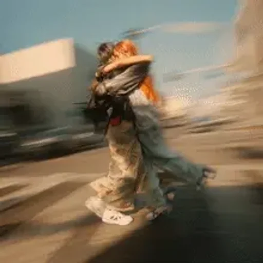 Um gato com óculos de sol e chapéu de palha andando de skate em uma estrada com o céu azul ao fundo.