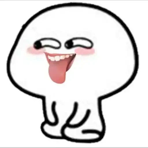 Um personagem de desenho animado com uma cara redonda e branca, língua para fora e expressão de brincadeira, com bochechas rosadas.