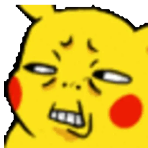 Pikachu com expressão facial de desconfiança ou surpresa, com bochechas rosadas e olhos semicerrados.