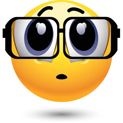 Rosto de emoji amarelo com óculos e expressão de surpresa ou dúvida.