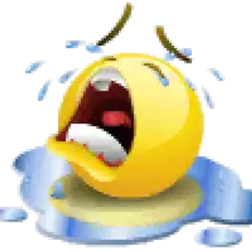 Um emoji amarelo chorando e suando, com lágrimas e gotas de suor ao redor.
