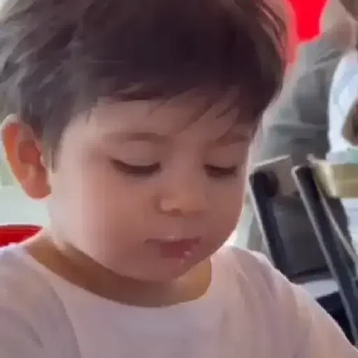 Menino pequeno com expressão pensativa, cabelo castanho e camiseta branca.