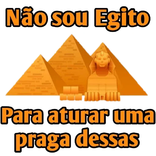 Uma imagem de três pirâmides e um Esfinge com o texto 'Não sou Egito Para aturar uma praga dessas'