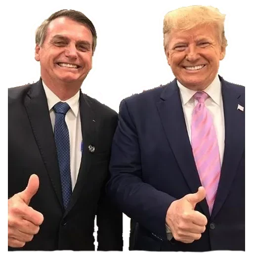 Dois homens, um com cabelo castanho e gravata azul, e o outro com cabelo loiro e gravata rosa, ambos de terno e fazendo um gesto de aprovação com o polegar.