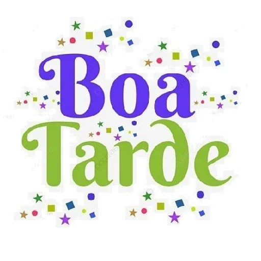 Um desenho colorido com texto 'Boa Tarde' em letras grandes, decorado com estrelas e quadrados coloridos.