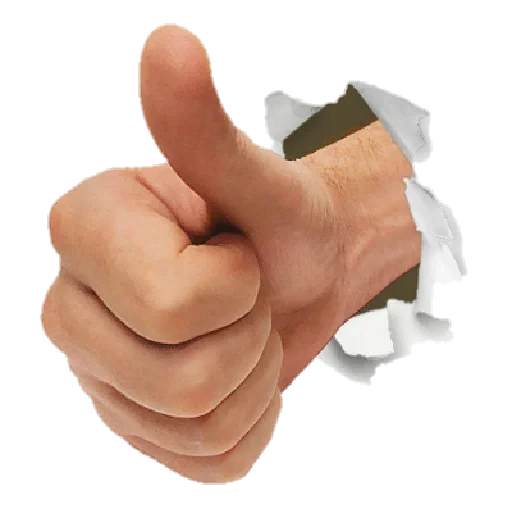 Mão com polegar para cima saindo de um buraco, com expressão de aprovação ou concordância.
