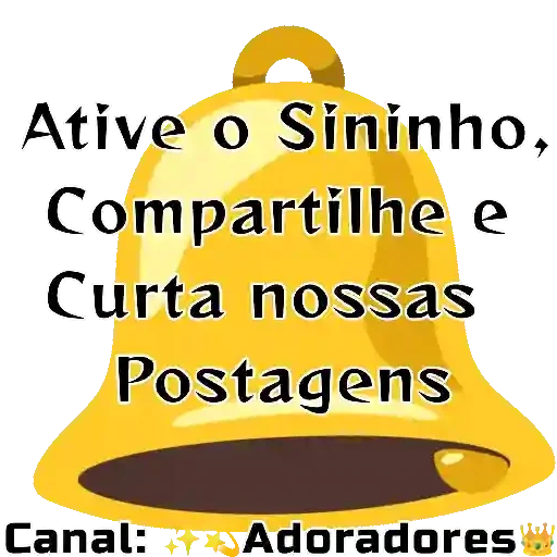 Um sino amarelo com as palavras 'Ative o Sininho, Compartilhe e Curta nossas Postagens' sobreposto em preto. Abaixo do sino, 'Canal: Adoradores'.