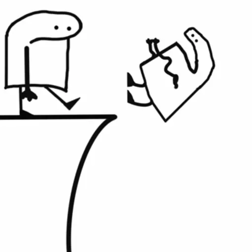 Um desenho simples de um personagem com uma expressão indiferente ou pensativa, feito com linhas pretas grossas.