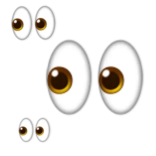 Olhos castanhos arregalados, alguns menores e outros maiores, em tons de castanho e dourado.