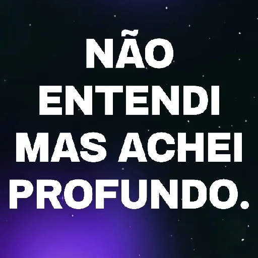 Um fundo escuro com estrelas e um gradiente roxo, com o texto "NÃO ENTENDI MAS ACHEI PROFUNDO." em letras brancas grandes.