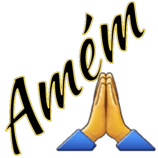 Mãos amarelas unidas em oração com as palavras "Amém" em preto e amarelo.