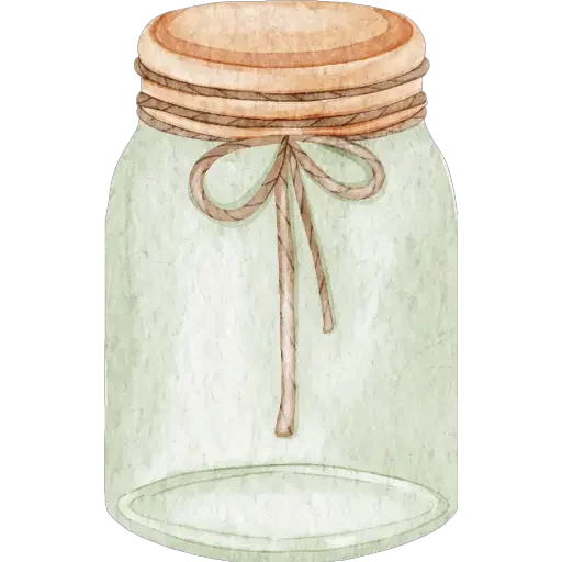 Frasco de vidro transparente com tampa de madeira e corda amarrada em um laço.