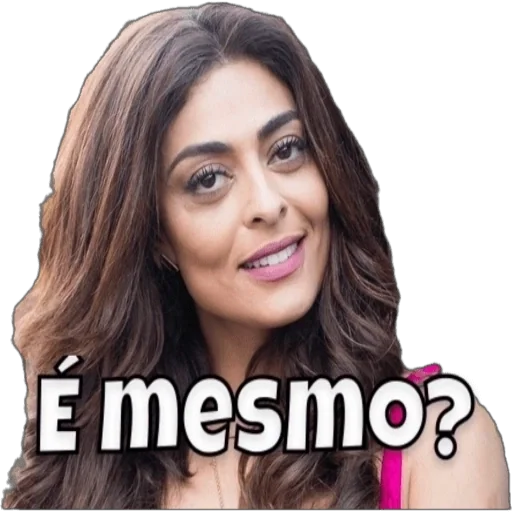 Uma mulher com cabelo castanho e um sorriso leve olhando para o lado, com a frase 'É mesmo?' em destaque na frente.