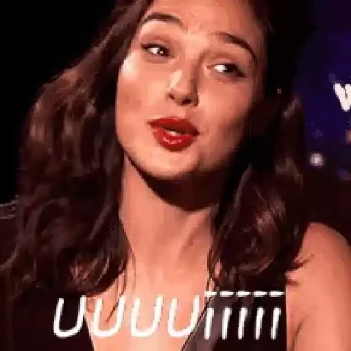 Mulher com expressão surpresa e boca aberta, lábios vermelhos, fundo escuro. 'UUUUUiiii'