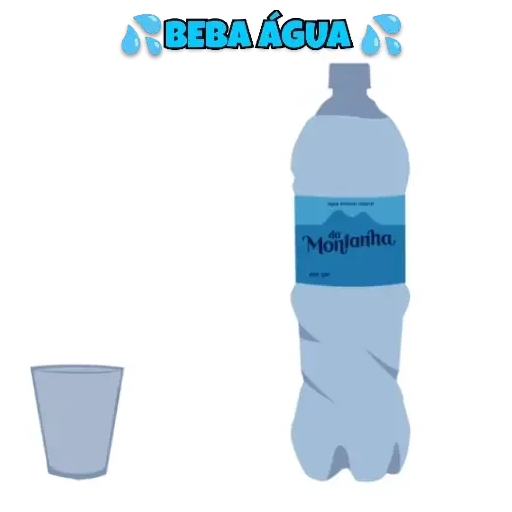 Uma garrafa de água mineral com um copo ao lado e o texto 'Beba Água' em cima.