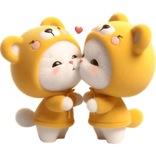 Dois gatinhos amarelos se beijando, com um coração vermelho acima deles.