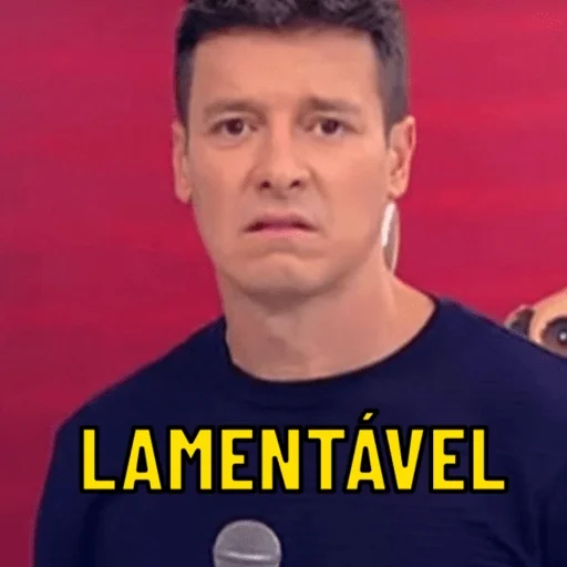 Homem com expressão séria e microfone, fundo vermelho, texto 'LAMENTÁVEL' em amarelo.