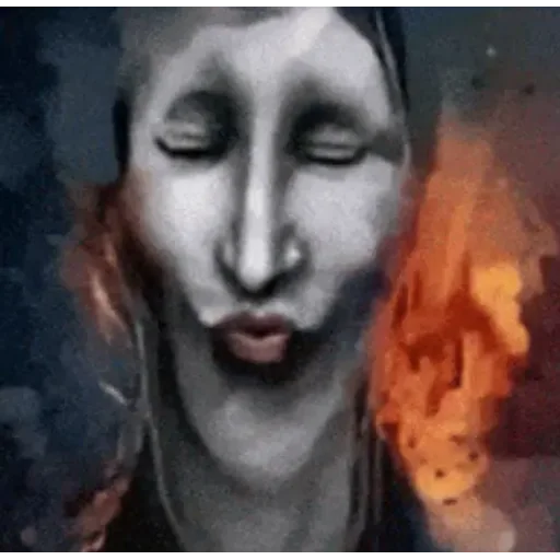 Rosto de mulher com olhos fechados e boca aberta, fundo laranja e preto.