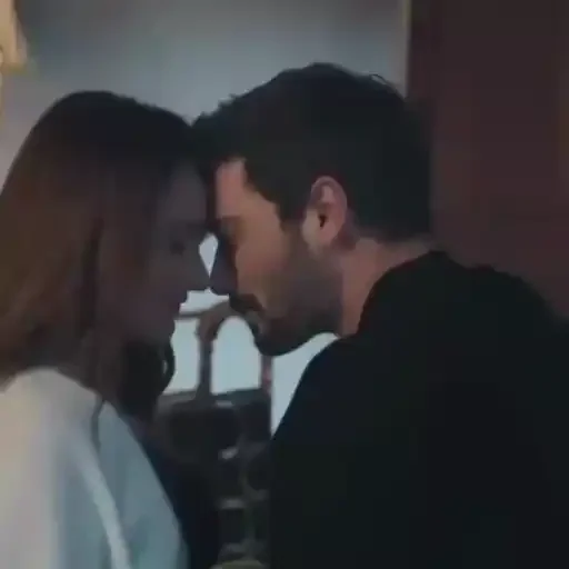 Casal se beijando, com a mulher usando um suéter branco e o homem uma camisa preta, ambos com os rostos próximos.