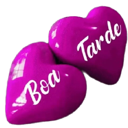 Dois corações roxos brilhantes com os textos 'Boa' e 'Tarde' em branco.