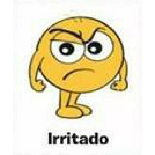 Um emoji amarelo com expressão irritada, sobrancelhas franzidas e olhar de desaprovação. Abaixo dele, está escrito 'Irritado'.