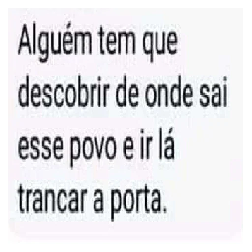 Um texto em preto sobre fundo branco que diz 'Alguém tem que descobrir de onde sai esse povo e ir lá trancar a porta.'