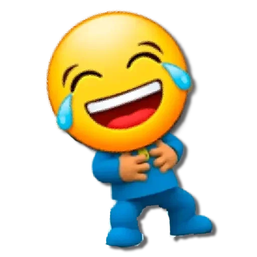 Um emoji de rosto amarelo com lágrimas de alegria, vestindo uma roupa azul, com expressão de muito humor e diversão.