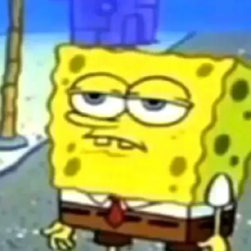 EsponjaBob com expressão de desconfiança ou surpresa, com olhos arregalados e sobrancelhas levantadas.