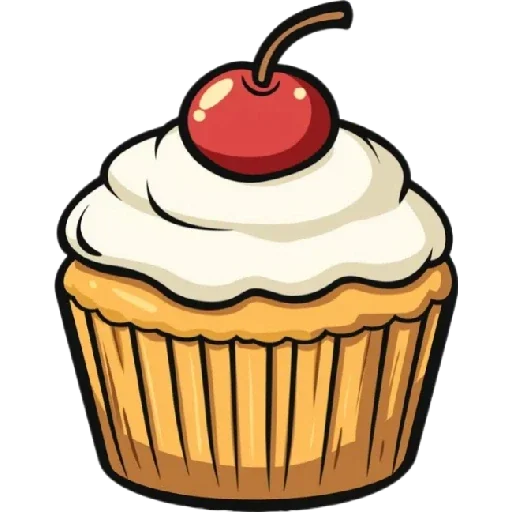 Um cupcake com cobertura branca e uma cereja vermelha por cima.