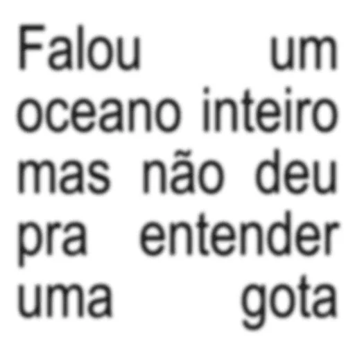 Um texto em preto sobre fundo branco, 'Falou um oceano inteiro mas não deu pra entender uma gota'.