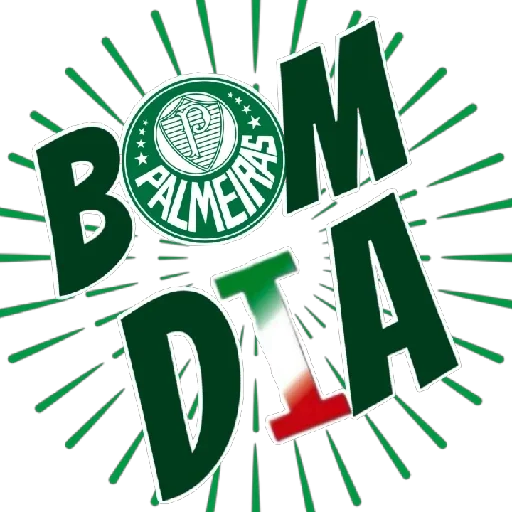 Um sticker com o texto 'BOM DIA' em letras grandes verdes e o logotipo do Palmeiras ao lado, com linhas verdes irradiando ao fundo.